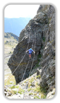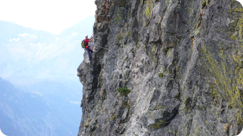 Descriptif de la via ferrata- longueur : 350 m- dénivelée : 40 m- durée : 1h301ère partie : sans réelle difficulté2° partie : sensation assurée sur le long pont de singe (20 m)3° partie : de petites planches à franchir, puis le pont népalais qui requiert moins d'effort que le passage sur le pont de singe